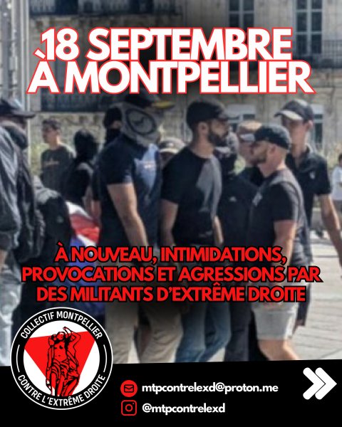 18 septembre à Montpellier, à nouveau intimidations et agressions par des militants de l’extrême droite