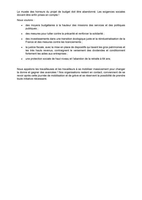 - Communiqué intersyndical : Les sacrifices pour le monde du travail, ça suffit ! : le jeudi 18 septembre 2025