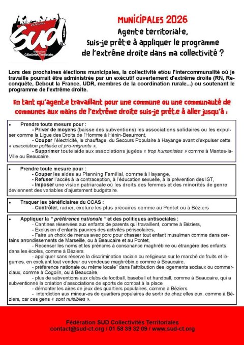 MUNICIPALES 2026 : Agent-e territorial-e, suis-je prêt-e à appliquer le programme de l’extrême droite dans ma collectivité ?