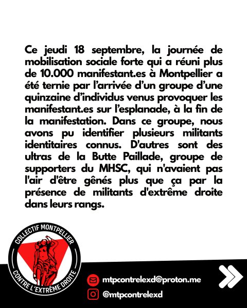 18 septembre à Montpellier, à nouveau intimidations et agressions par des militants de l’extrême droite
