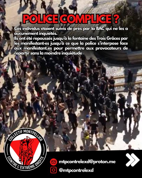 Cela a notamment été le cas à Montpellier, où un bande de factieux nationalistes s’en sont pris à des lycéennes, puis à une défenseure des droits de l’homme puis a tabassé plusieurs personnes dans un café après avoir été largement protégés par la BAC et les CRS.