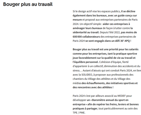 SUD planche sur des propositions en termes de pratique sportive, mais l’esprit est bien loin de la récupération idéologique managériale, qui s’inscrit dans la propagande managériale autour des Jeux Olympiques de 2024 (s Si si allez voirici : https://www.paris2024.org/fr/promouvoir-les-bienfaits-du-sport-pour-la-sante/