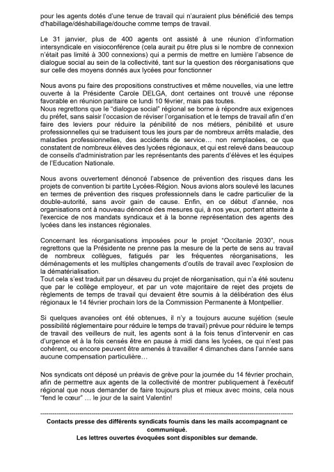 Communiqué de presse intersyndical CFDT CGT SUD UNSA - Mobilisation du 14 février 2025
