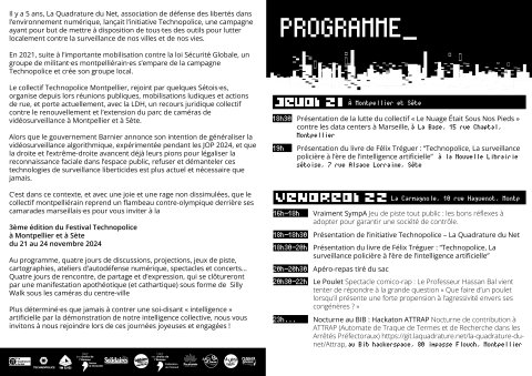 Festival Technopolice à Montpellier et Sète du 21 au 24 novembre 2024 : Festival contre la surveillance de nos villes et de nos vies