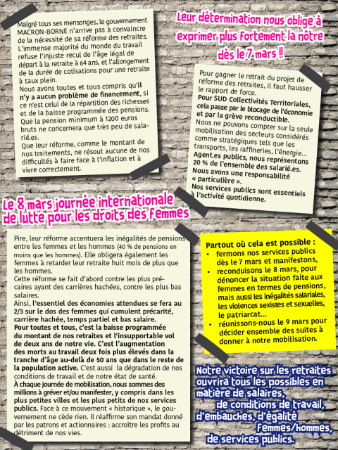 - Le 7 mars : on défend nos retraites ! : le mardi 7 mars 2023