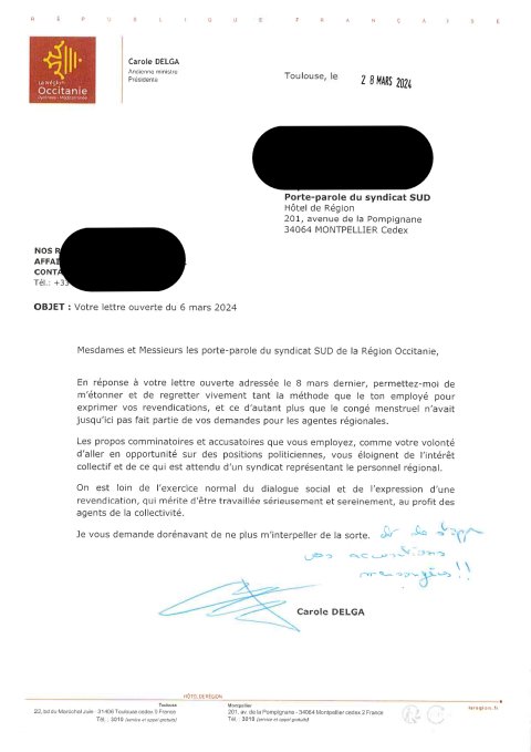 L’important pour notre organisation reste d’ouvrir le débat et de faire progresser les conditions de travail des femmes, au Conseil Régional Occitanie comme ailleurs.