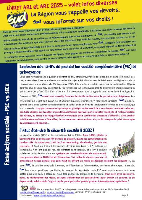 2026 sera une année d’élections professionnelles. S’il y a plusieurs syndicats, c’est parce que nous n’avons pas tous la même vision du travail, de la société ou le même rapport avec notre employeur. A SUD, on travaille nos dossiers, on accompagne des agent.e.s qui sont souvent dans des situations très difficiles (santé, harcèlement, racisme…), et on refuse toute pratique clientéliste ou d’être le porte-parole de notre employeur. Pour SUD, la Région doit améliorer ses pratiques, mieux considérer les agent.e.s notamment dans les lycées et les CREPS, et seuls le rapport de force collectif et la solidarité entre agent.e.s feront bouger les lignes. Pour gagner de meilleures conditions de travail, SUD sait aussi mener des intersyndicales, sans perdre de vue les intérêts des agent.e.s et du service public, ni renier nos valeurs !