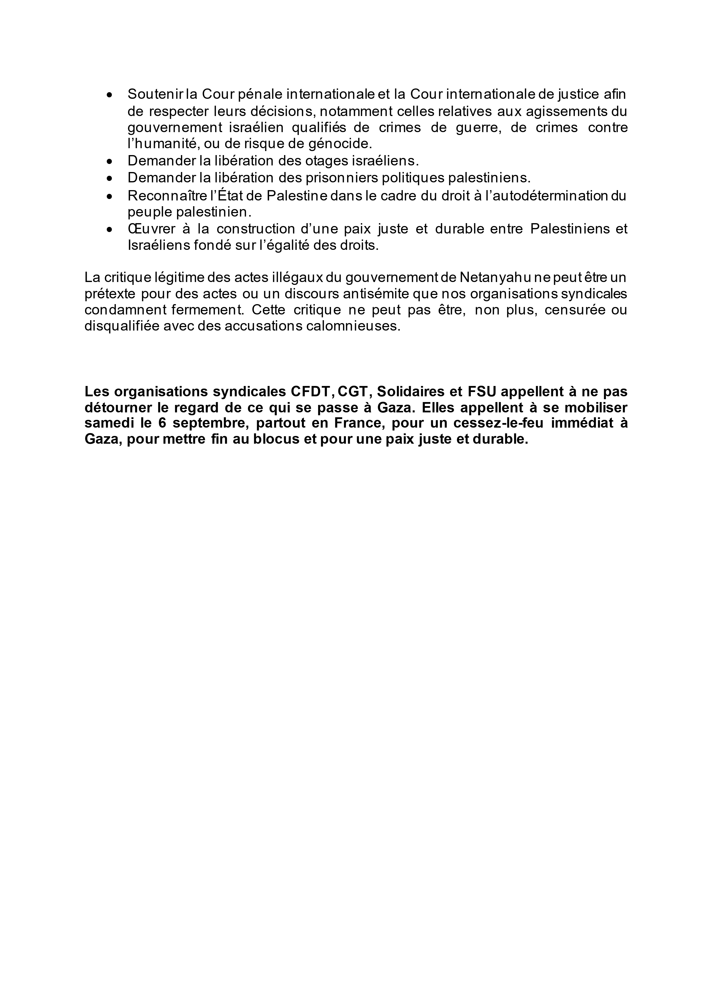 Manifestons le 6 septembre pour un cessez-le-feu immédiat et pour une paix juste et durable !"