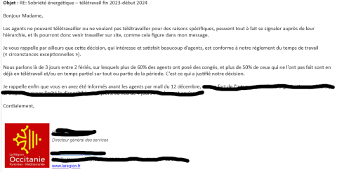 Et sans aucun dialogue social sur le sujet puisque s’agissant de l’obligation de télétravail entre les fêtes de Noël et le Jour de l’an, rien n’a été signifié aux organisations syndicales lors de la F3SCT du 30 novembre.